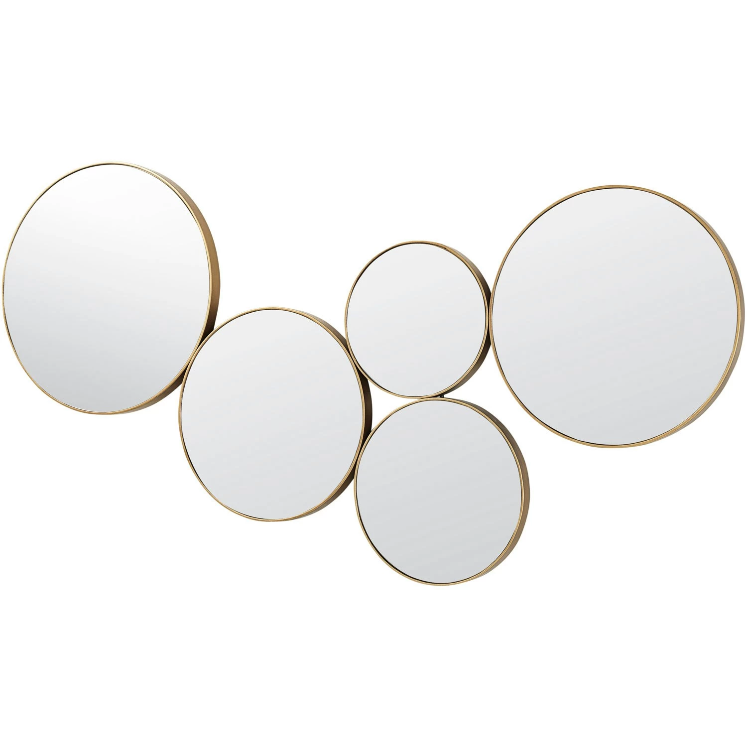Der Spiegel Kunst der dänischen Marke Broste Copenhagen besteht aus fünf zusammenhängenden runden Spiegeln in verschiedenen Größen, welche zu einer interessanten Dekoration an deiner Wand werden. Der Spiegel kann sowohl vertikal als auch horizontal aufgehängt werden und passt daher in große als auch in kleinere Räume. Alle Spiegel sind in Metall eingerahmt. Du kannst zwischen Messing Farben oder Schwarz wählen.