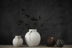 Steinzeugvase von Ernst Kirchsteiger. Fülle sie mit Schnittblumen und schaffe Leben und Freude in deinem Haus. Diese Vase aus Steinzeug eröffnet endlose Möglichkeiten, wunderschöne Blumenarrangements zu kreieren. Die Vase ist mit einem Lederband umwickelt, das einen eleganten und lebendigen Ausdruck verleiht. Die Vase ist in drei Größen und vier Farben erhältlich.