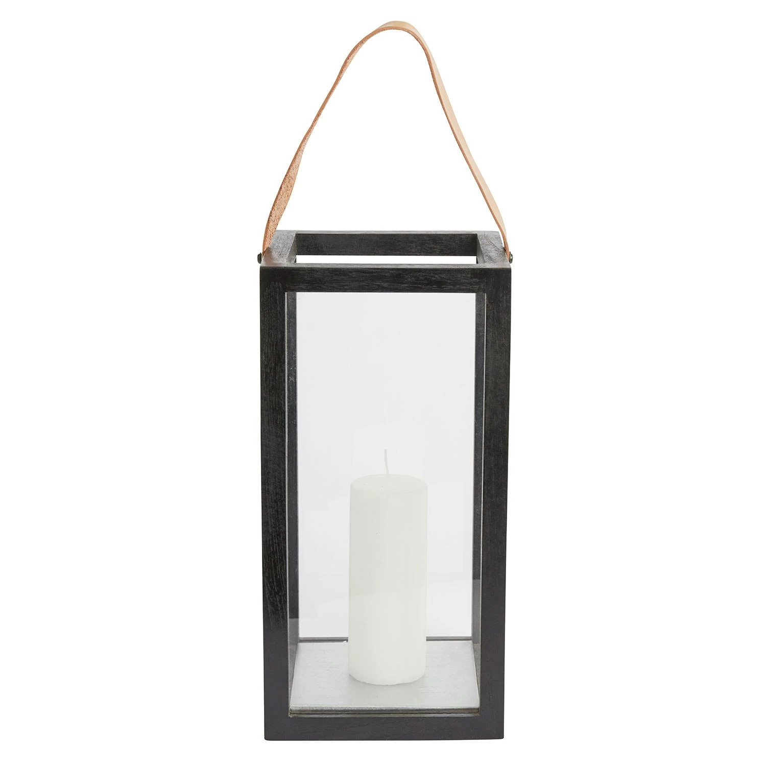 Laterne mit maßvollem Design aus natürlichem Teak-Holz mit Ledergriff. Nordisch ausdrucksvoll ist der raue Kontrast zwischen empfindlichem Glas und recyceltem Holz.